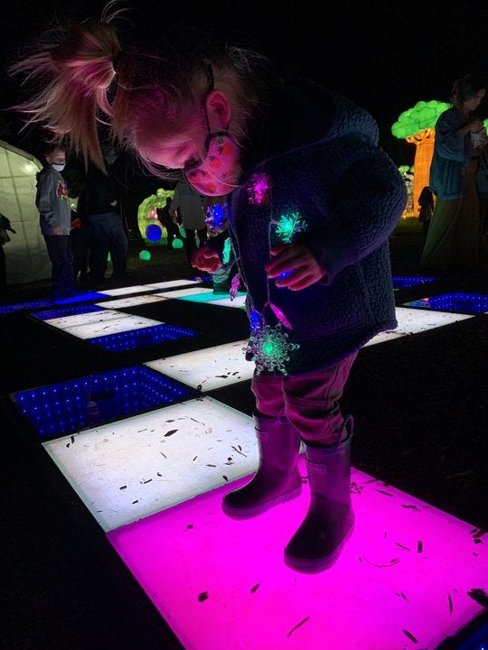 Ours have been great! Look at this guy with his lights and his little pink strawberry mask! That is definitely my son. We went to Glowfari at the Oakland Zoo the day after Thanksgiving and he had so much fun he could barely stand at the end of the night. May we all find some level of curiosity and joy this month!